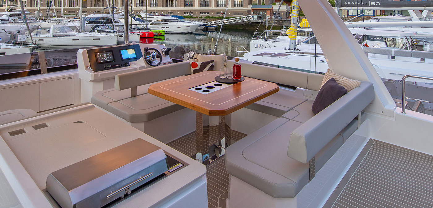 The new Moorings 403PC offers a contemporary, innovative design with a sleek roof cap which elegantly integrates the largest flybridge ever seen on a 40-footer. The wraparound windowpanes also mean you can enjoy panoramic views of your chosen destination. Each living space offers an enriched experience on the water.